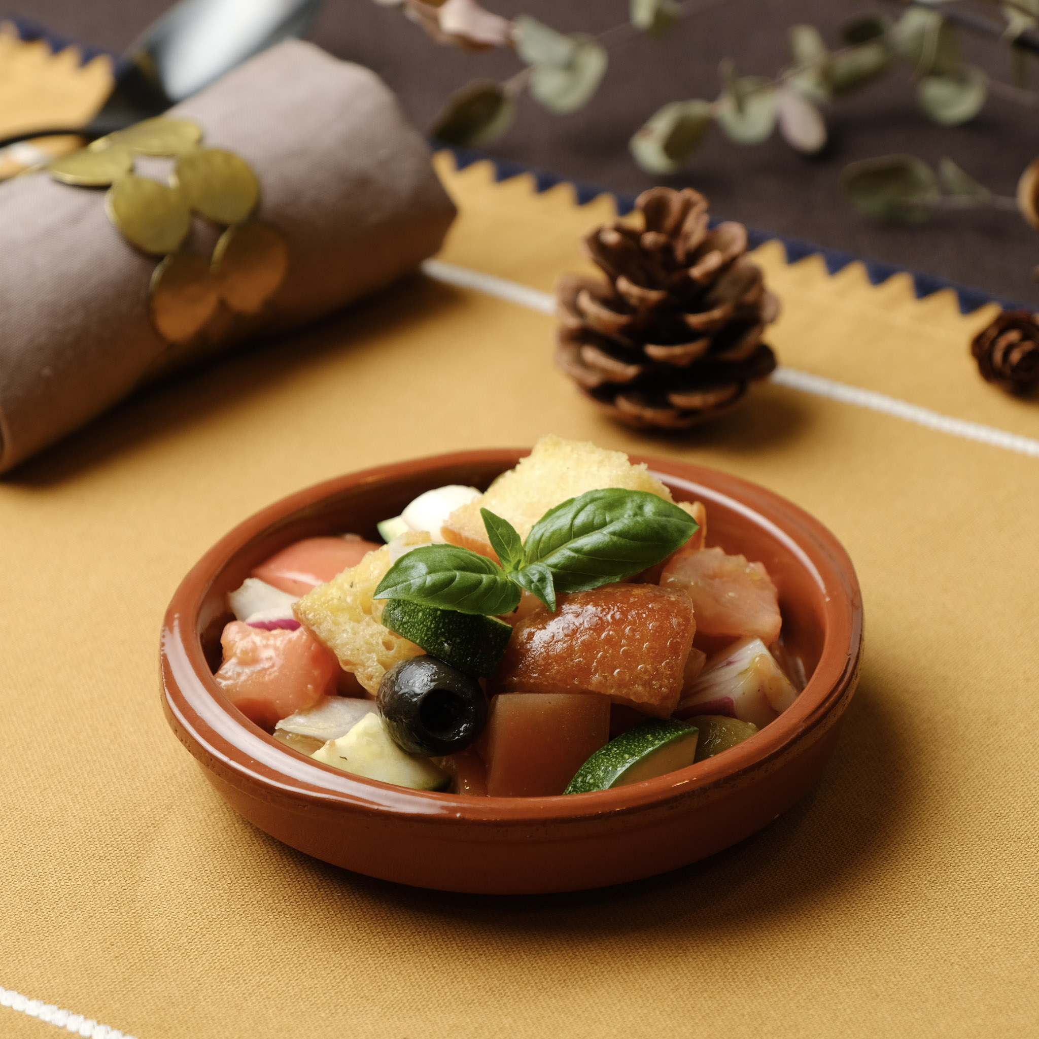 海老の旨みを活かしたマカロニグラタンに、野菜が主役のパンツァネラサラダ、きのこの香り豊かなポタージュ。