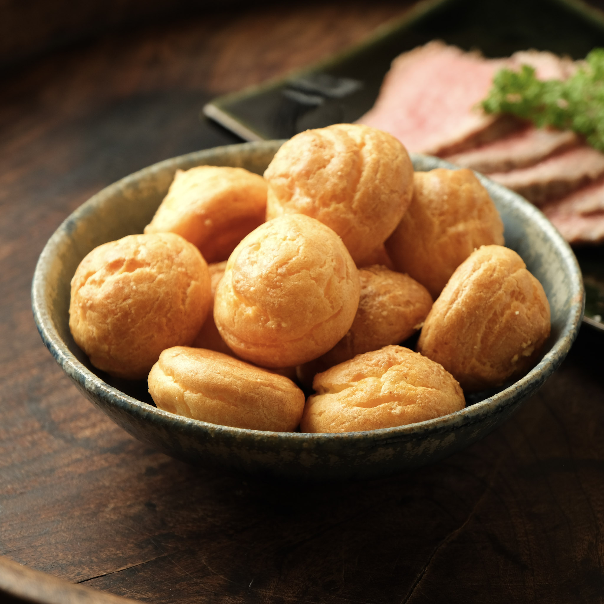 ●チーズのグジェール(シュー生地にチーズを練り込んで焼く、おつまみシュー)