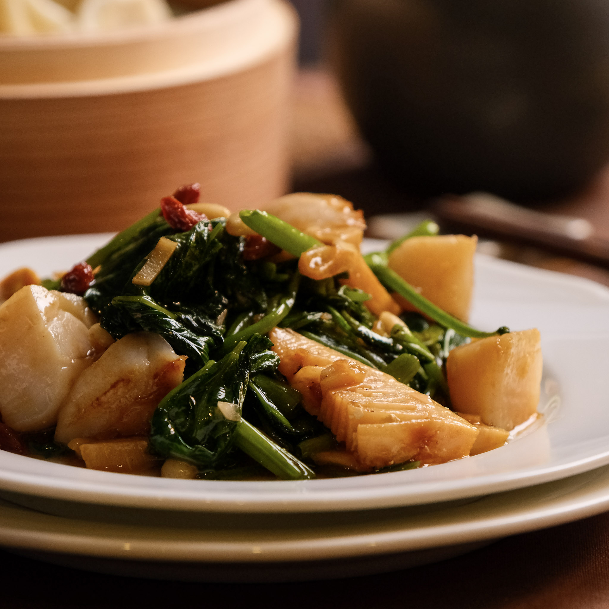 ・空芯菜と帆立貝の貝柱の炒め物(帆立の旨味がたっぷり、さっとできる炒め物)