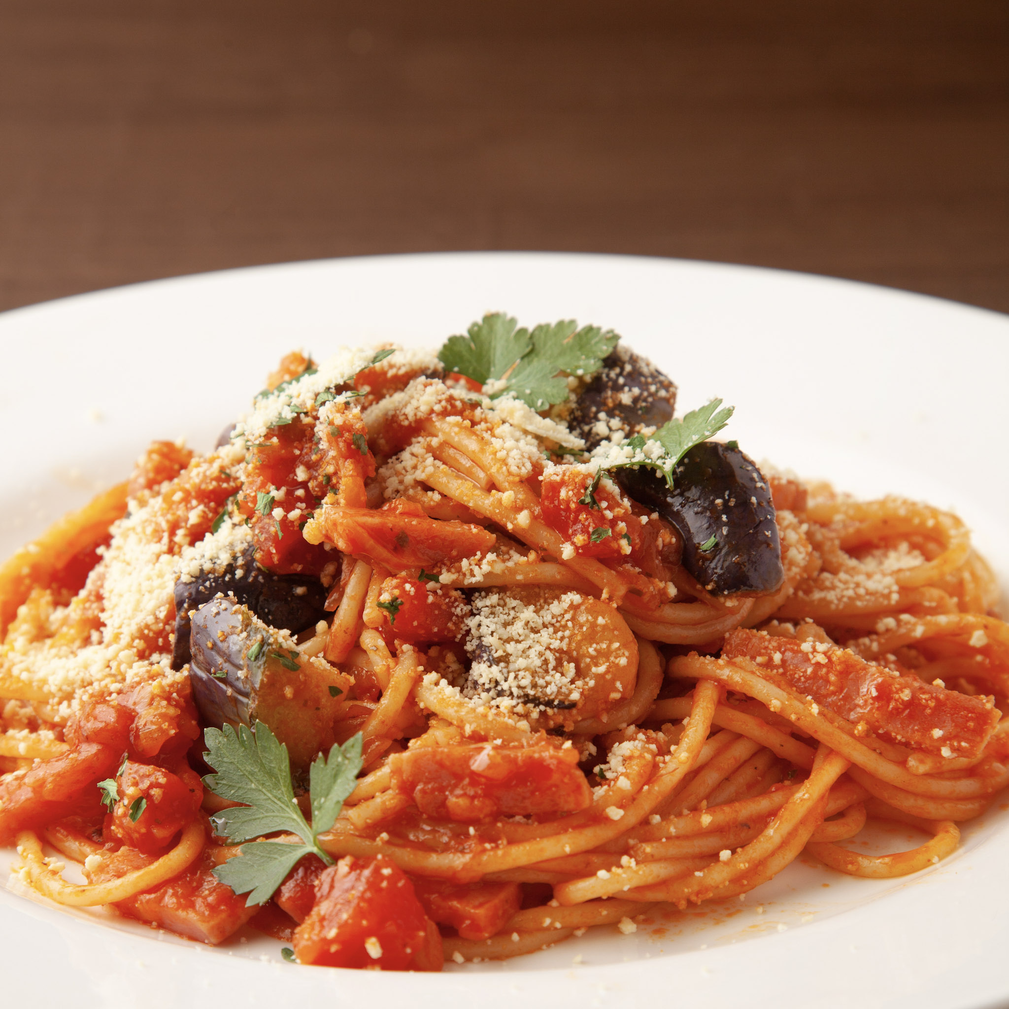 トマト系はピリリとした辛みが特徴のアラビアータ!ジューシーな茄子を合わせます。
