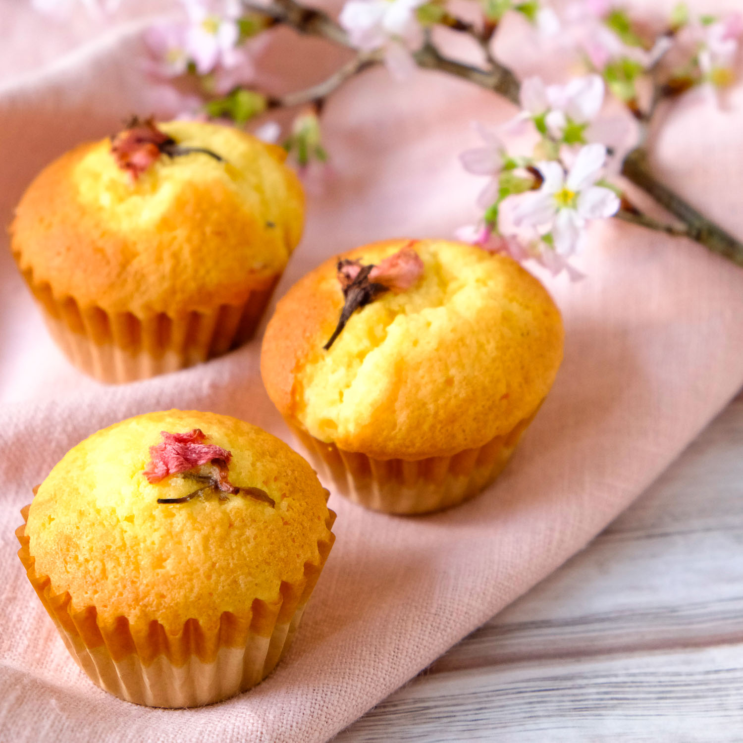 (桜の塩漬けを使った、甘さの中に春らしさを感じるカップケーキ)- このクラスで習得できること